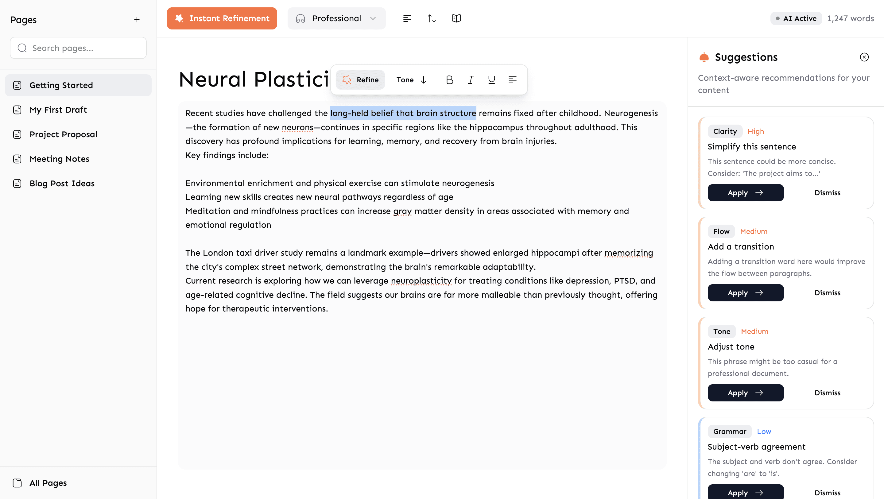 Transform messy thoughts into powerful writing. Write fearlessly, publish confidently—AI handles the rest. Start Writing for Free